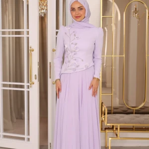 Simple & Elegant Modest Dress Feel like a dream in our Luna Gown. This dress features a smooth Crepe top with beautiful floral embroidery and a flowy Chiffon skirt that moves gracefully with you. Available in 1Color: • Soft Lavender (Calm and feminine) Why you'll love it: • Beautiful floral embroidery on the front. • Comfortable Crepe top and flowy Chiffon bottom. • Fully lined for 100% modesty. • Perfect for weddings, bridesmaids, or formal parties.